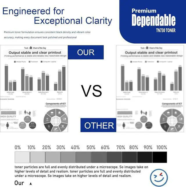 Easy to be installed and recognized: Just Install the TN 730 Toner Cartridge into the Relative Slot of the Printer, then You Can Print What You Want