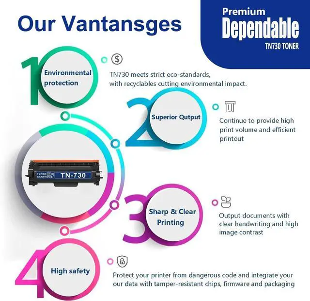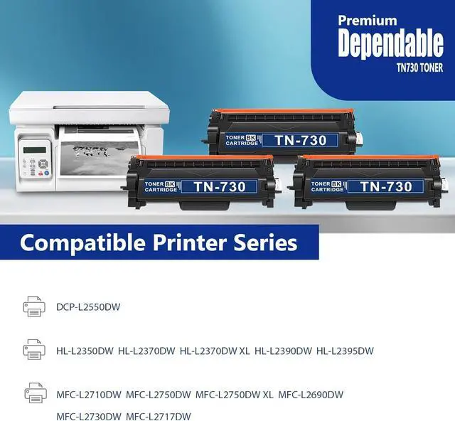 Our TN730 Toner Cartridge Replacement for Brother DCP-L2550DW MFC-L2710DW MFC-L2750DW MFC-L2750DWXL HL-L2350DW HL-L2370DW/DWXL HL-L2390DW HL-L2395DW Printer