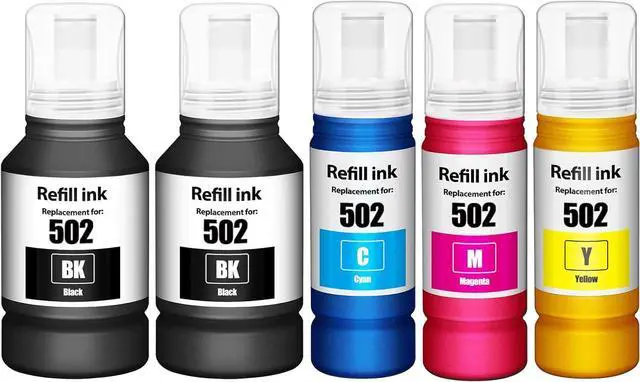 502 Ink Refill High Page Yield: Per T502 502 black ink refill bottles yields up to 10,000+ pages, per T502 502 color ink refill bottles provides up to 8,000+ pages.