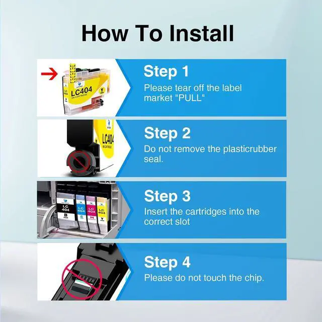 With Upgrade Chip: LC404 ink cartridges for brother printer has lastest smart chip, fit all new firmware version perfectly, easy to install; Print sharp black text and bright-coloured output, excellent performance; Multi-layer Packaging, no leaking