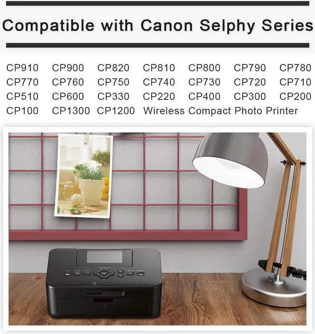 Compatible with Canon Selphy Series: CP1300 CP1200 CP910 CP900 CP820 CP810 CP800 CP790 CP780 CP770 CP760 CP750 CP740 CP730/CP720 CP710/CP510 CP600 CP400 CP330/CP220 CP300 CP200 CP100 Wireless Compact Photo Printer