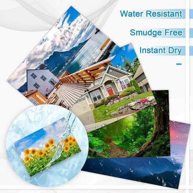 Feature: Dye sublimation technology for instant dry, Smudge-free, Water resistant, Anti-fingerprint, Anti-oxidation. These post card sized photos are printed using dye sublimation print technology, so that means as soon as you print is finished it is instantly dry, smudge free and water resistant.