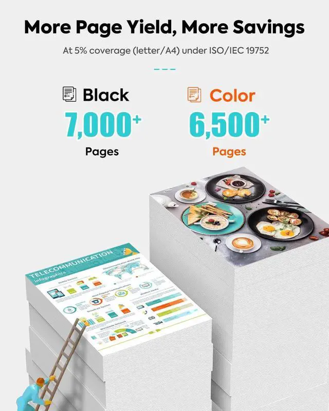 [Ink Capacity] 70ml each for T552 Black, Photo Black, Cyan, Magenta, Yellow, and Grey. Yield: 7,000 pages for Black; 6,500 pages for each Color at 5% coverage (letter/A4).