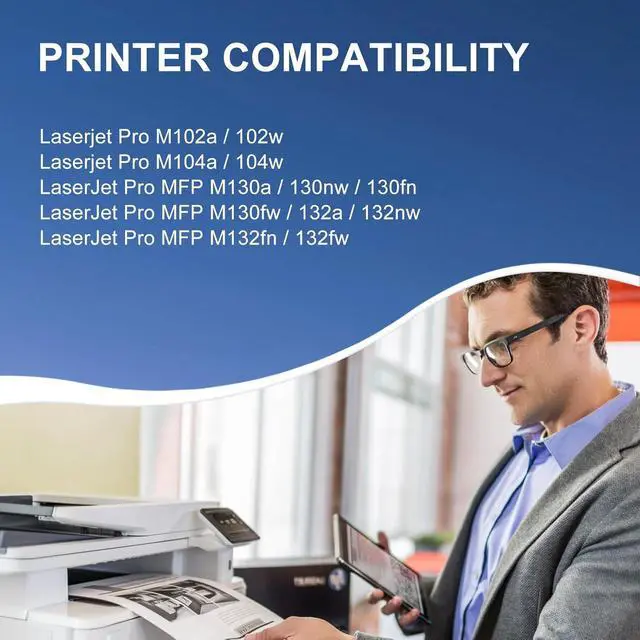 Printer Compatibility: Compatible for HP Laserjet Pro MFP M102A M102W M104A M104W M132A M130FW M130NW M130FN M130A M132FW M132NW M132FN Printers