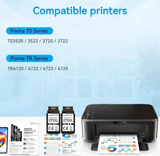 Printer ink for 275xl package contents: 2 Pack replacement for canon pg-275xl black ink cartridges (2 275xl black ink cartridge)