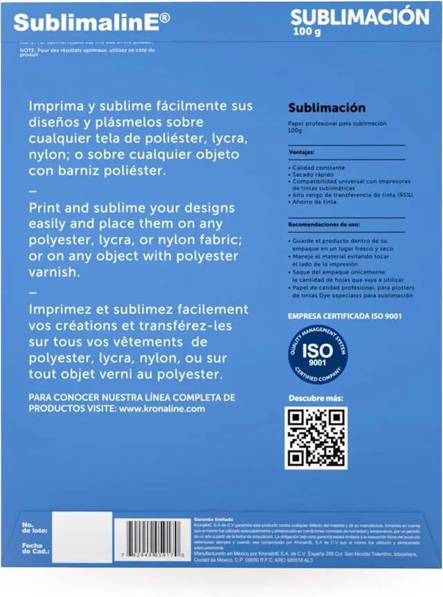 Kronaline | Professional Paper For Sublimation Quick Drying100g In Letter Size Package With 125 Sheets