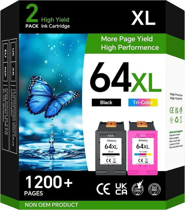Printer ink for hp 64 ink cartirdge 2 pack contents: 1x 64XL ink cartirdges black, 1x 64XL ink cartirdges tri-color, 1x user guide to assist with installation, you can use encre for hp 64XL for hp printer ink at work, school or at home