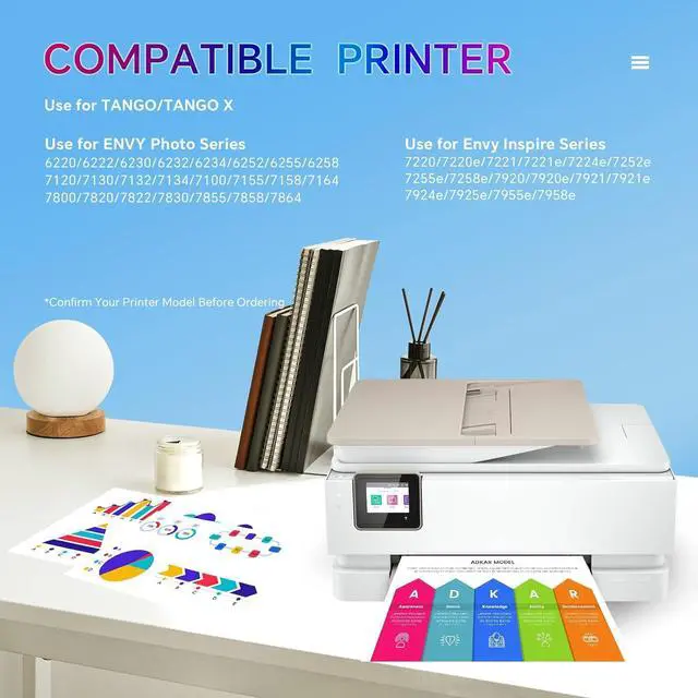 Works with hp Envy Photo 6220 6222 6230 6232 6234 6252 6255 6258 7120 7130 7132 7134 7100 7155 7158 7164 7800 7820 7822 7830 7855 7858 7864 Series, Envy Inspire 7220 7220e 7221 7221e 7224e 7252e 7255e 7258e 7920 7920e 7921 7921e 7924e 7925e 7955e 7958e, and TANGO & TANGO X photo printer, 64xl for hp 64 ink cartirdges simple drop-in replacement design ensures quick cartridge changes with no hassle