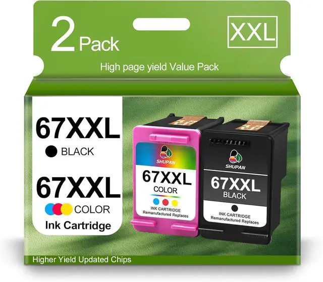 PACKAGE :2 Pack for HP Ink Cartridges 67XXL (1× 67XXL Black Ink Cartridge, 1× 67XXL Color Ink Cartridge, total 2 pack)