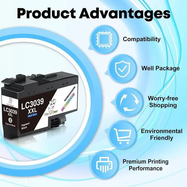 Miss Deer LC3039XXL Black Compatible Ink Cartridges for Brother LC3039XXL LC3039 XXL LC3037 LC3037XXL with Latest Chips (Non-OEM)