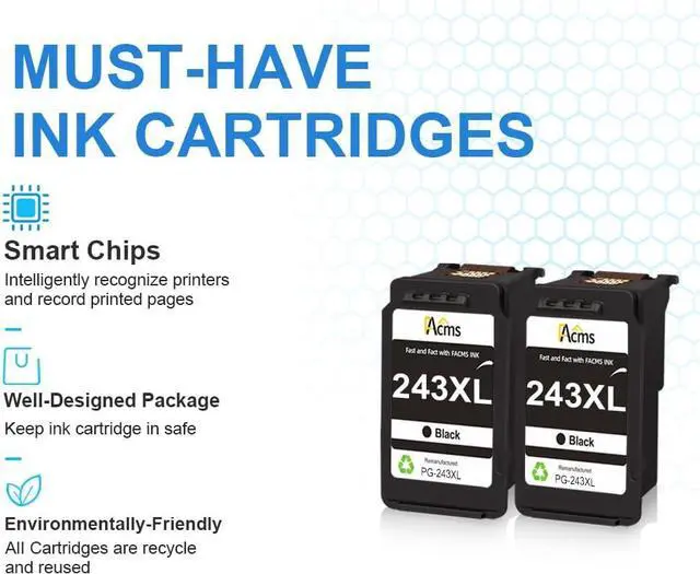 Feature: Smart chips to ensure identify your printer intelligently. Strictly test to comfirm the compatibility of remanufactured for canon pg-243xl ink cartridge. Well-package keeps 243xl ink cartridges in good condictions.