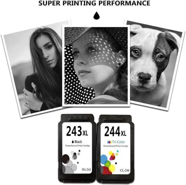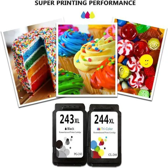 Replacement for Canon PG-243 Black Ink Cartridge & CL-244 Color Ink Cartridge