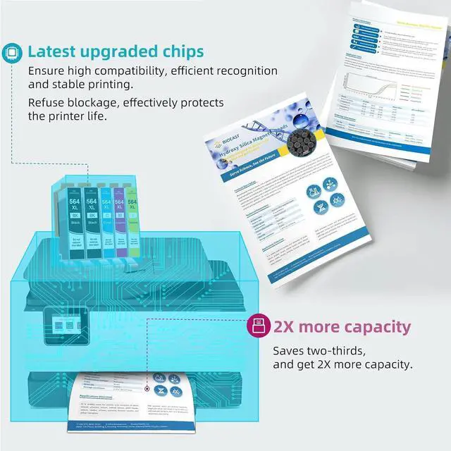 Vibrant & rich printing: All Relcolor Extra Large capacity 564 ink refilling with high-quality and harmless raw materials: premium ink and recycled plastic - with more capacity, delivering you impressive printouts meanwhile protecting your printer and the environment (Approved by CE, REACH, ISO 9001, ISO 14001 and ISO 14067 certificate)