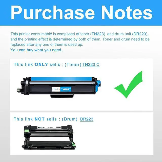 Reliable Quality: LCL TN223 cartridge uses high quality toner, toner particle size distribution, good mobility, high transfer rate, resulting in a clear image and high gloss print effect; Printing efficiency is high, waste powder rate is low, so as to ensure sufficient page yield.