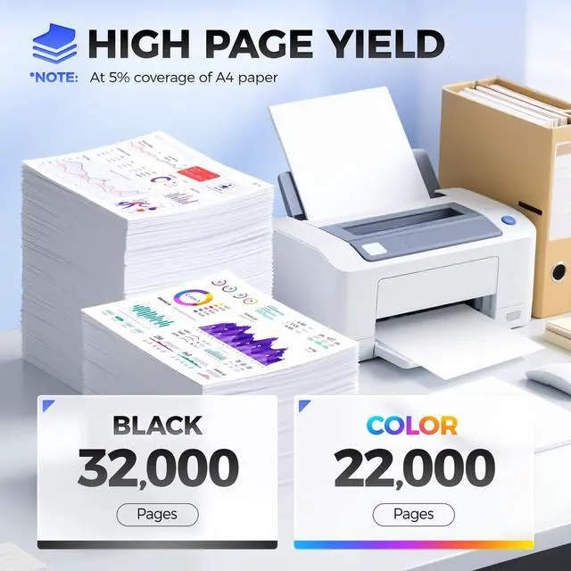 High Page Yield: Up to 32,000 pages per C950X2KG black Toner Cartridge,up to 22,000 pages per C950X2CG C950X2MG C950X2YG color (at 5% coverage of A4 Paper),High Yield Version C950X2KG Toner Cartridge.