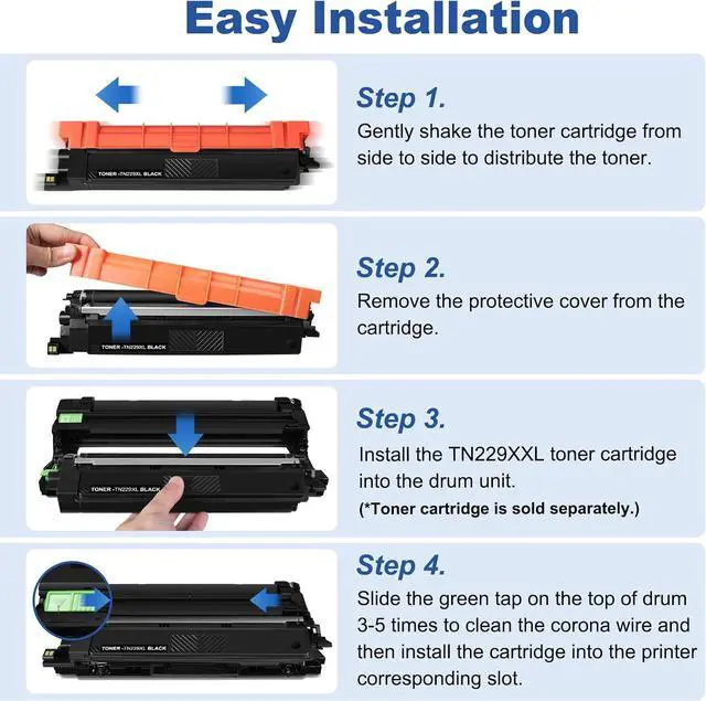 Package includes: 1-Pack TN229XL TN229 black toner cartridges ( 1 x TN229XLBK black toner cartridge ) (Note: TN229 XL toner ONLY, DR229CL drum unit is not included)
