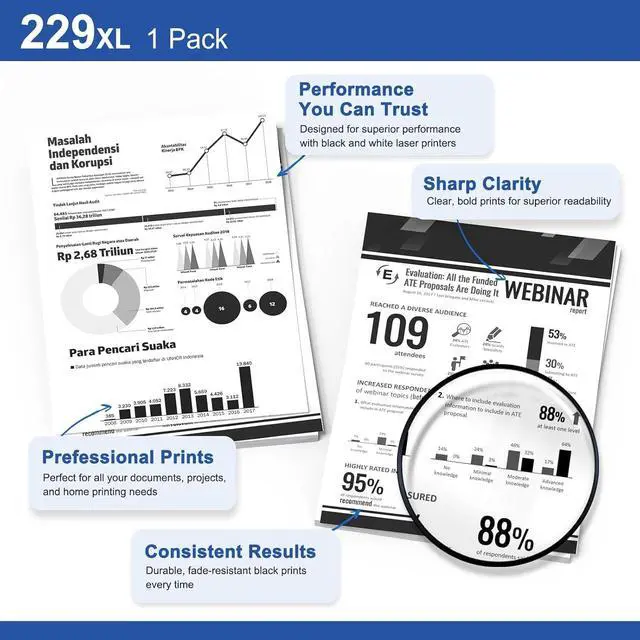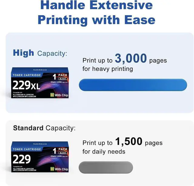 Page Yield: TN229XL Black toner cartridge can print 3,000 pages at 5% coverage.