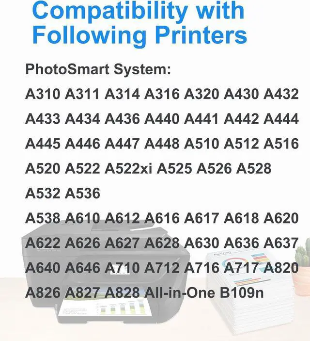 Printer Compatibility: Photosmart A310 A311 A314 A316 A320 A430 A432 A433 A434 A436 A440 A441 A442 A444 A445 A446 A447 A448 A510 A512 A516 A520 A522 A522XI A526 A532 A536 A610 A612 A616 A617 A618 A620 A622 A626 A627 A628 A630 A636 A637 A640 A646 A710 A712 A716 A717 A820 A826 A827 A828 Printer