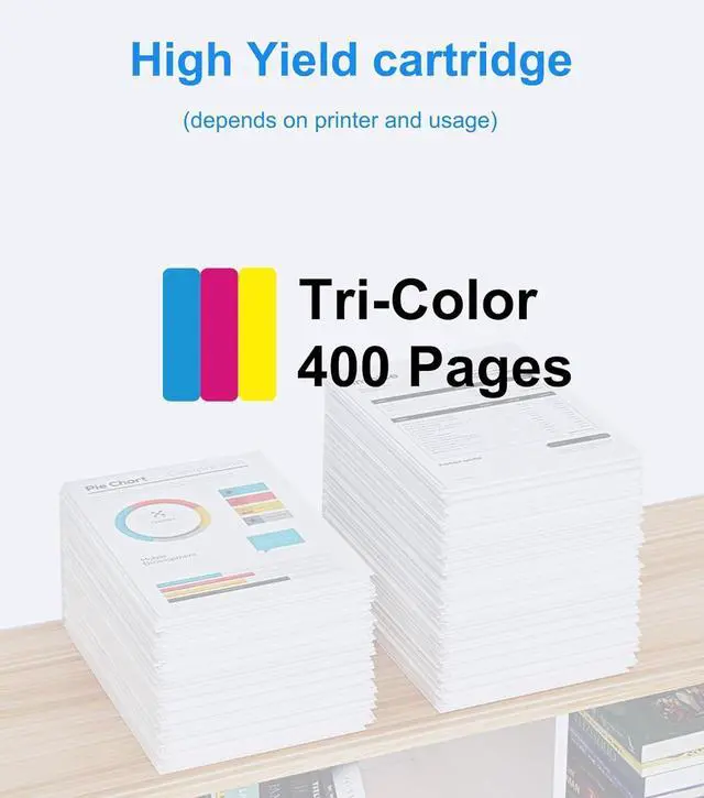 Page Yield: Tri-Color-400 per cartridge | Shelf Life: 24-36 months per cartridge | *Average printer cartridge page yield in accordance with ISO IEC 24711