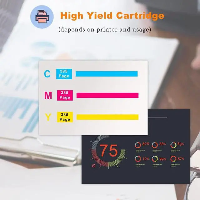 [Page Yield]: up to 385 pages per T125 Cyan/Magenta/Yellow ink cartridge at 5% coverage (Letter A4).