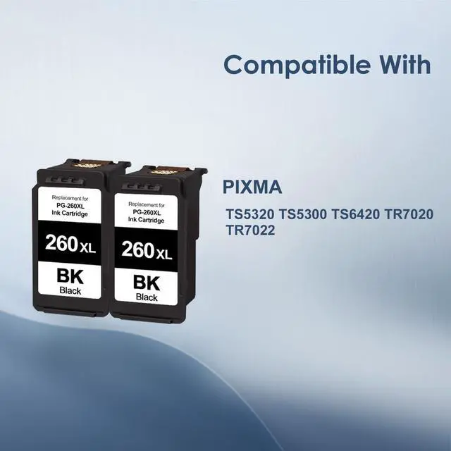 PG-260 XL Value Pack Ink Cartridge Replacement for Canon 260 260XL Ink cartridges Work for Pixma TR7020 TS6420 TR7022 TS5300 TS5320 Printer (2 Black)