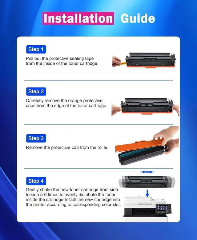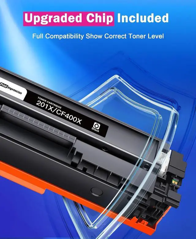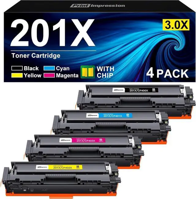 Contents: Compatible toner cartridges replacement for HP 201X Toner Cartridges 4 Pack High Yield for CF400X CF401X CF402X CF403X (1 Black, 1 Cyan, 1 Magenta, 1 Yellow)