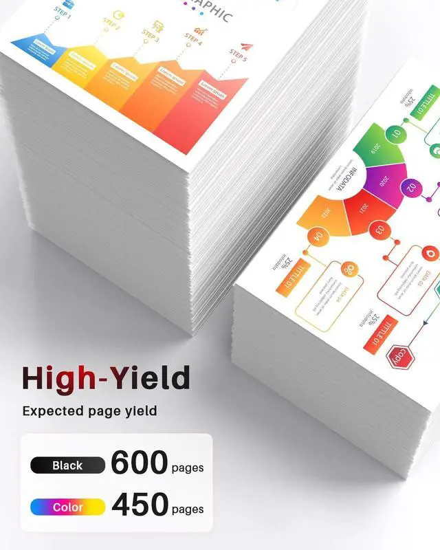 High Page Yield: Up to 600 Pages per 212XL Black Ink Cartridge, 450 Pages per 212XL Color(Cyan, Magenta, Yellow)Ink Cartridge, at 5% coverage of A4.