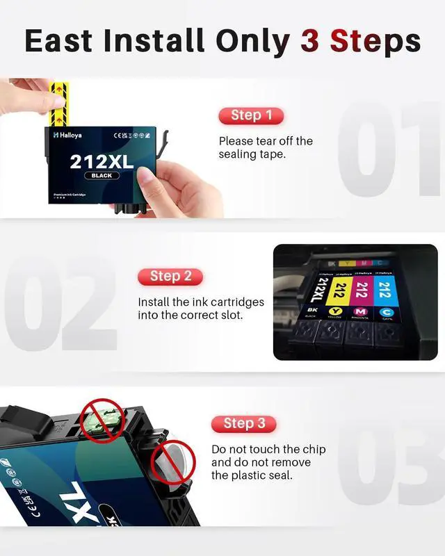 Upgraded Chip: Halloya 212XL 212 XL ink cartridges Remanufactured Replacement with latest upgraded printer firmware to works better with your printer.