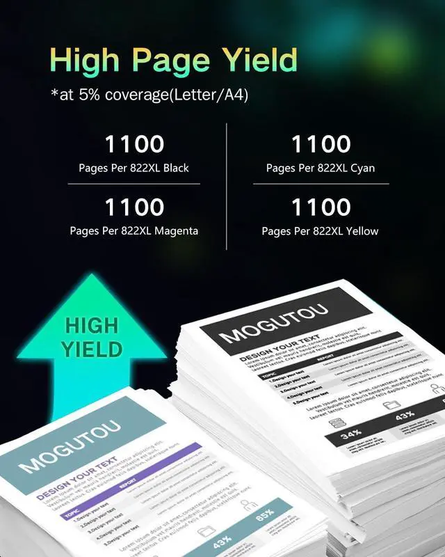 MOGUTOU 822xl ink cartridges deliver an excellent printing quality with vivid colors and high level of clarity.We offer worry-free after-sales service,please reach out if you have any questions
