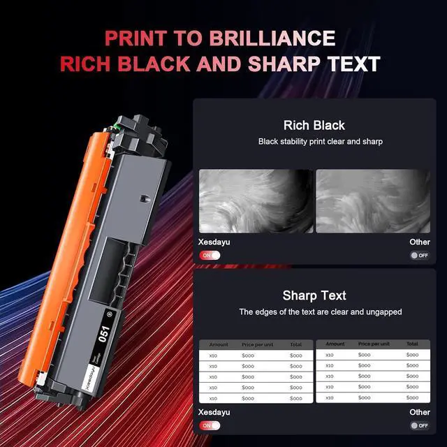Excellent Performance: Our crg-051 toner cartridges deliver superior printing results with rich black and clear print