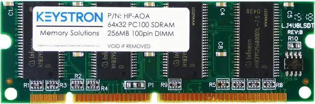One 256MB PC100 100pin sodimm Part#: HP-256MB-PC100-100P, HP-AOA 100% Compatible with Lifetime Warranty Manufactured by Keystron, LLC Keystron is a registered trademark of Keystron, LLC