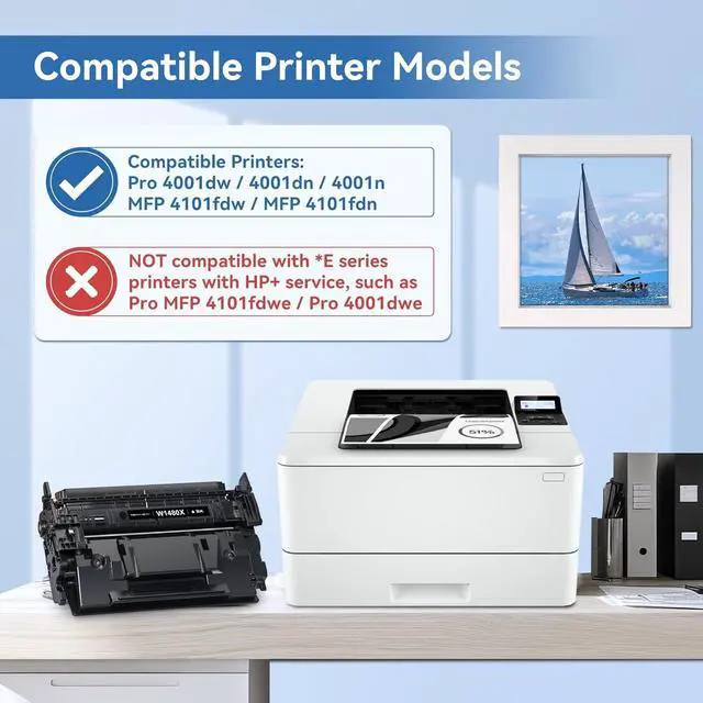 NOTE: NOT COMPATIBLE WITH Contract e series Printers with HP+ service activated, such as Pro 4001dwe and MFP 4101fdwe Printers. Please confirm your printer model before ordering