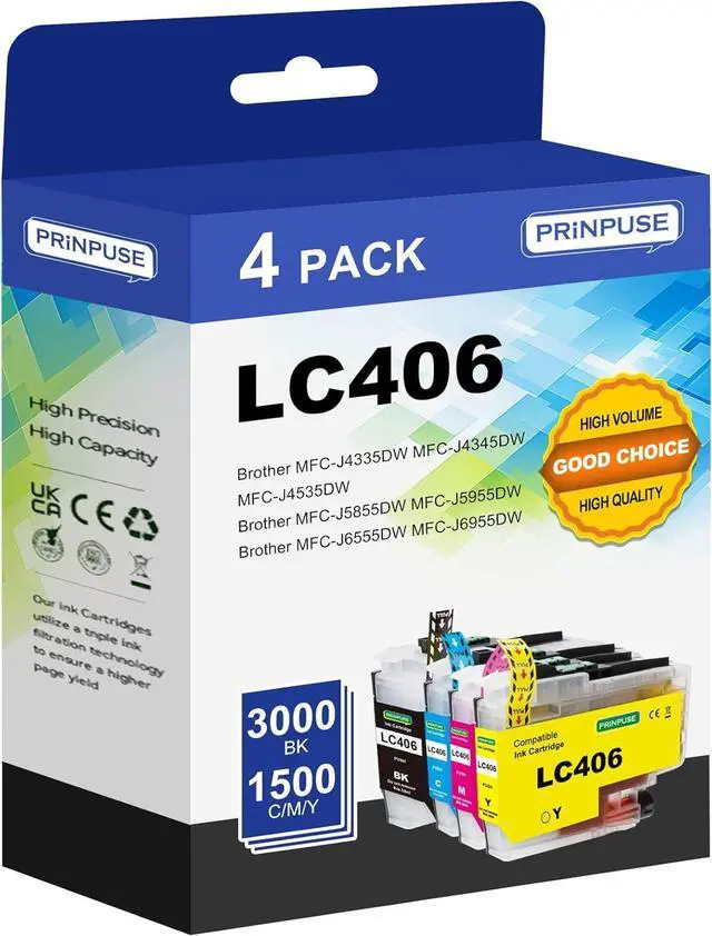 Package content: PRINPUSE LC406 ink cartridges 4 Pack replacements for Brother LC406 LC406XL ink cartridge