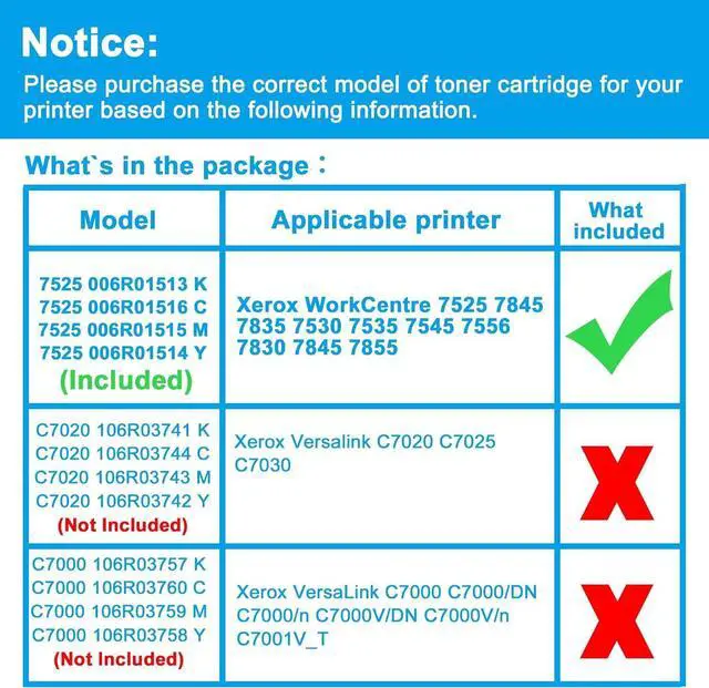 Compatible PrintersReplacement for Xerox WorkCentre 7525 7845 7835 7530 7535 7545 7556 7830 7845 7855