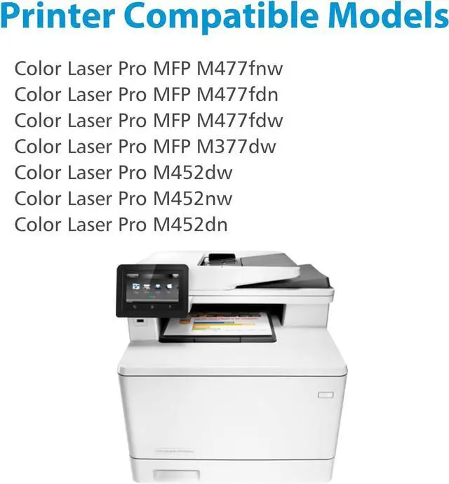 • Compatible for HP Printers: Color Laser Pro M452dw M452nw M452dn, Color LaserJet Pro MFP M477fnw M477fdn M477fdw M377dw Toner Cartridges