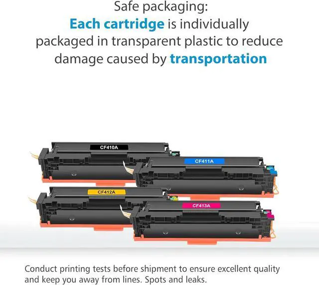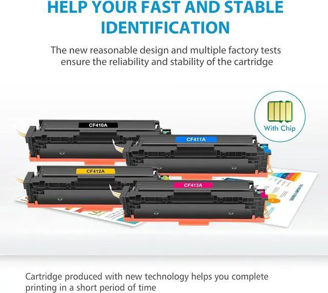 • Include: FIREINK 4 Packs Toner Cartridge Compatible Replacement for 410A CF410A CF411A CF412A CF413A Black Cyan Yellow Magenta
