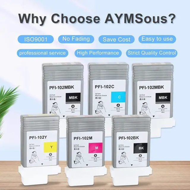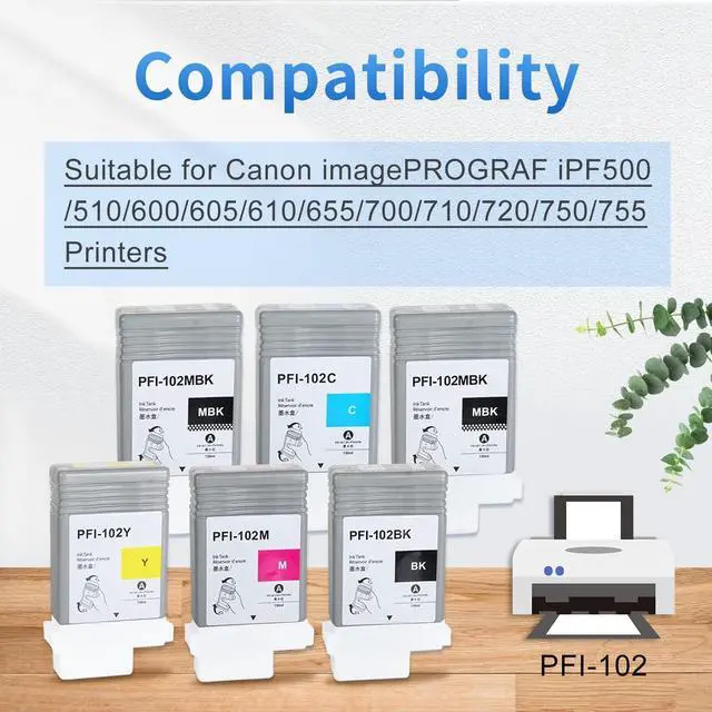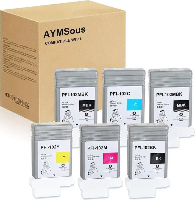 • You Can Receive: 6 Pack Compatible Ink Cartridge Replacement for Canon PFI-102 PFI102 PFI-102MBK PFI-102BK PFI-102C PFI-102M PFI-102Y(2 Matte Black/1 Black/1 Cyan/1 Magenta/1 Yellow)