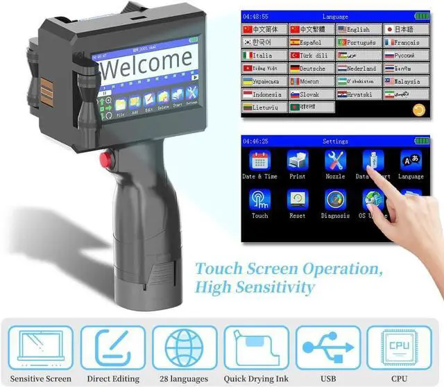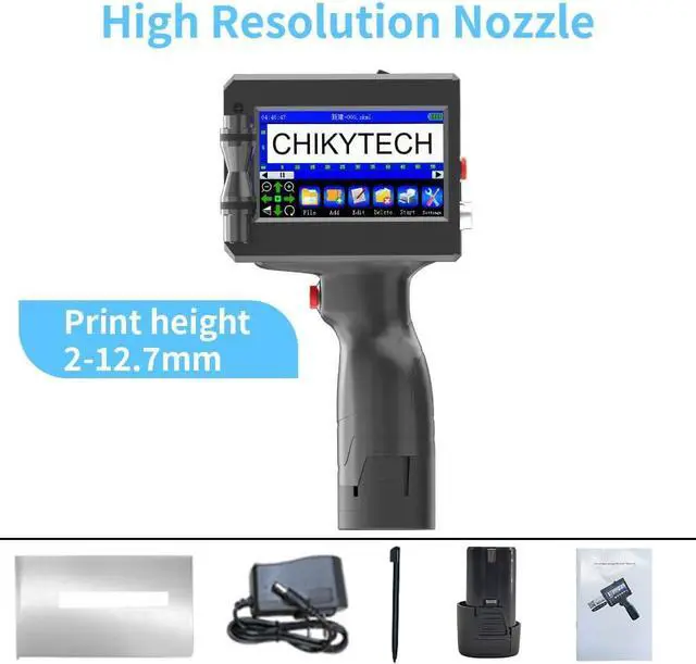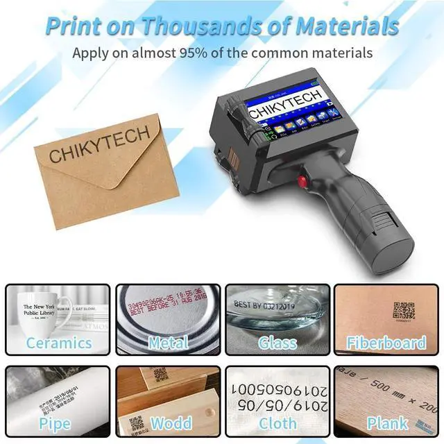 Simple operation: the handheld inkjet printer prints on various materials such as cartons, stone, wood, pipe, metal, glass, etc. Just select the content you want to print, press the handheld printer on the material, pull the trigger, and slide The printer can print.