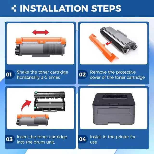 Compatible Printer: Compatible with Brother "DCP-L2520DW, DCP-L2540DW, HL-L2300D, HL-L2305W, HL-L2315DW, HL-L2320D, HL-L2340DW, HL-L2360DW, HL-L2380DW, MFC-L2680W, MFC-L2685DW,MFC-L2700DW, MFC-L2705DW, MFC-L2707DW, MFC-L2720DW, MFC-L2740DW (Please check that your printer model matches the printer model of this toner cartridge before placing an order)