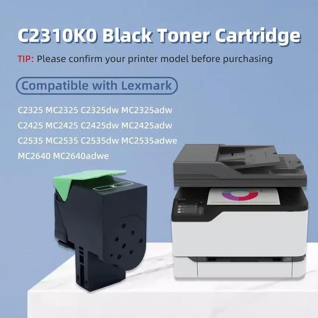 COMPATIBLE MODEL: C2310K0 Black Toner Cartridge compatible with lexmark C2325, C2325dw, C2425, C2425dw, C2535, C2535dw, MC2325, MC2325adw, MC2425, MC2425adw, MC2535, MC2535adwe, MC2640, MC2640adwe printer.(TIP: Please confirm your printer model when purchasing the product and make sure it matches your printer model.)