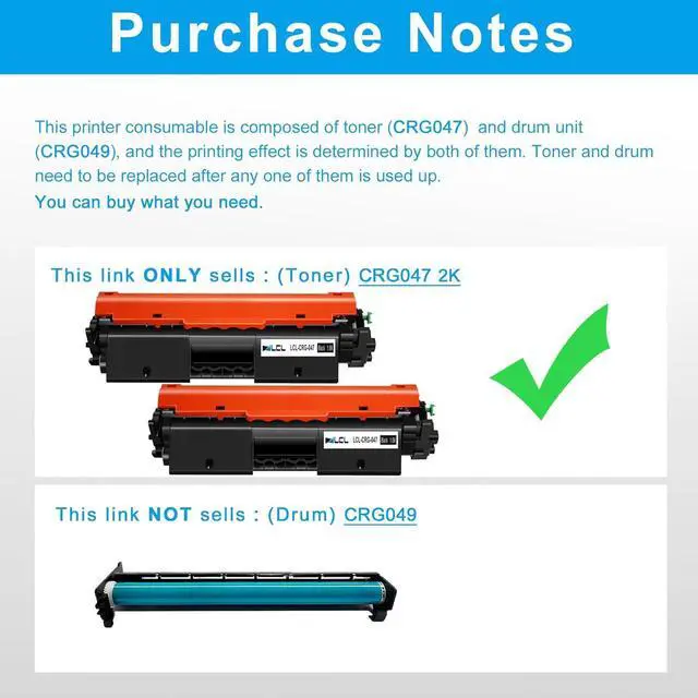 Reliable QualityLCL CRG-047 Black toner cartridge uses high quality toner, toner particle size distribution, good mobility, high transfer rate, resulting in a clear image and high gloss print effect; Printing efficiency is high, waste powder rate is low, so as to ensure sufficient page yield.