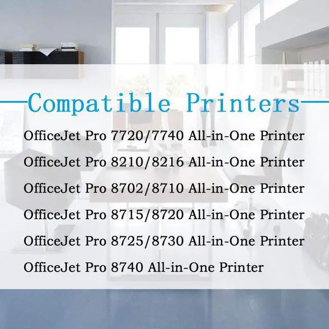 Compatible Printers:HP OfficeJet Pro 8710 8720 8740 7720 7740 8216 8200 8210 8218 8700 8702 8714 8715 8716 8717 8724 8725 8726 8727 8728 8730 8734 8735 8736 8743 8744 8745 8746 8747 Printer