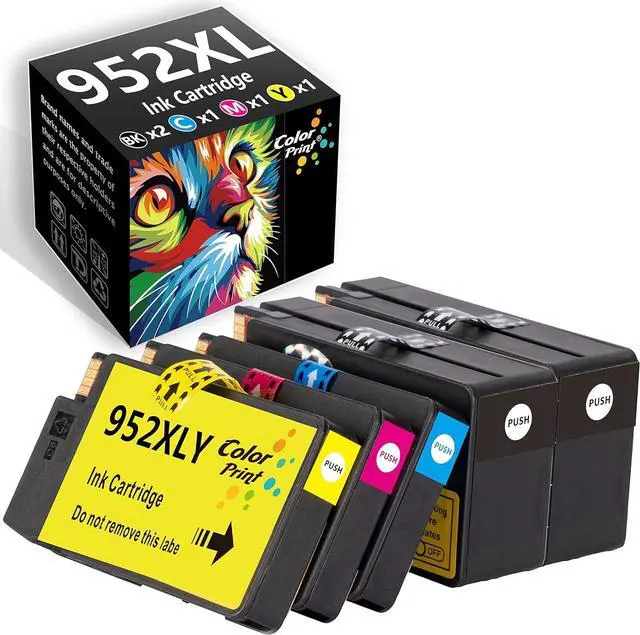 Package Contents: 5-Pack Compatible Ink Cartridge Replacement for HP 952 XL Combo (2 Black + 1 Cyan + 1 Magenta + 1 Yellow, Upgraded Chip)