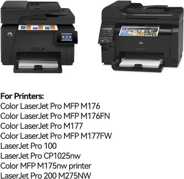 Suitable for printers: HP Laserjet Pro CP1020/CP1021/CP1022/CP1023/CP1025/CP1025nw/CP1026nw/CP1027nw/CP1028nw HP LaserJet 100 color MFPM175nw/M175a/M175b/M175c/M175e/M175p/M175r/M275s/M275t/M275u/M275nw/M275/M275a HP Color LaserJet Pro MFP M176n/M177fw