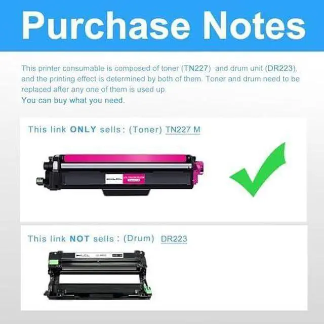 Reliable QualityLCL TN223 Magenta toner cartridge uses high quality toner, toner particle size distribution, good mobility, high transfer rate, resulting in a clear image and high gloss print effect; Printing efficiency is high, waste powder rate is low, so as to ensure sufficient page yield.