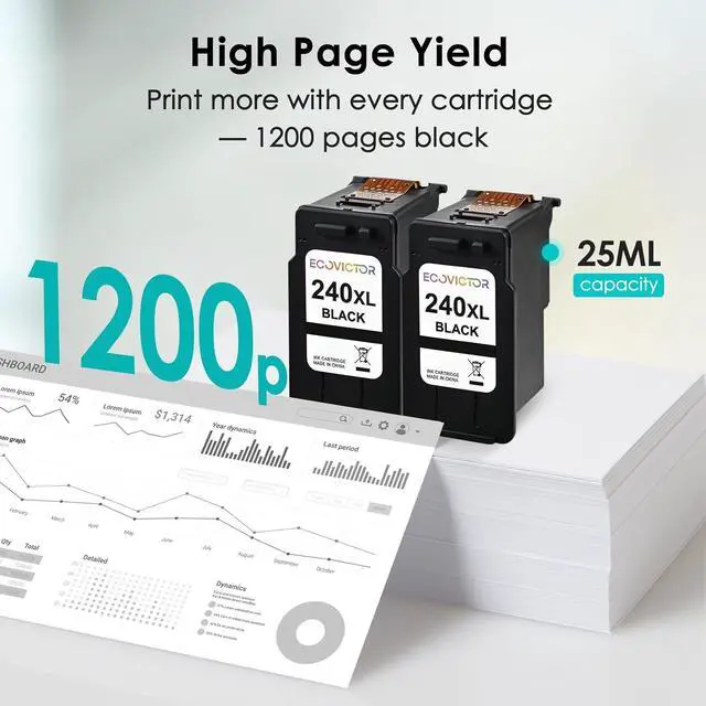 Eco-Friendly Printing Excellence: Eco Victor for canon pg-240xl black ink cartridge is made from eco-friendly materials and the latest technology to deliver greater efficiency, higher printing precision, and reliable accuracy. Meeting FSC standards, these cartridges support sustainability. The pg 240 black ink cartridge prints natural photos and clear, sharp black text for your documents.