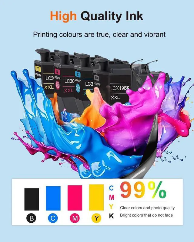 Delivers Superopr Inkjet Print quality: LC3019 XXL Ink Cartridges for provides sharper images and high quality output, long time non fading, fast printing speed and high page yield. The ink flows smoothly and consistently, ensuring hassle-free printing without any smudges or streaks