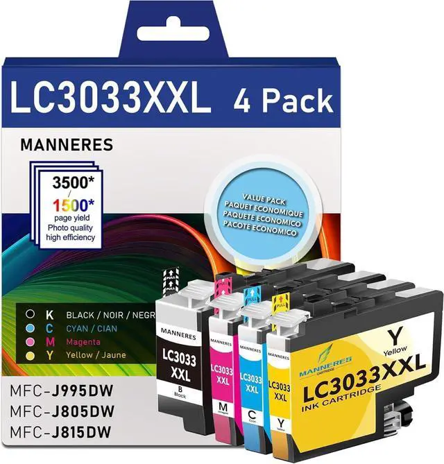 Includes: 1×LC3033BK black,1×LC3033C cyan,1×LC3033M magenta and 1×LC3033Y yellow Ink Cartridges.
