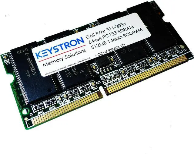 One 512MB 144pin PC133 Sodimm Part#: 311-2036 100% Compatible with Lifetime Warranty Manufactured by Keystron, LLC Keystron is a registered trademark of Keystron, LLC