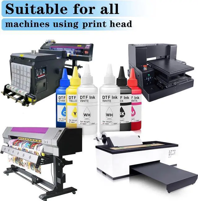 For DTF printers: all film transfer desktop printers and industrial printers with printheads installed, the most commonly used models are L1800, R2400, L800, 1430, P400 P408, P600 P608, P800, R1390, R1800, R1900, R2000, R2880, R3000, 3880, 4880, 7880, XP-15000